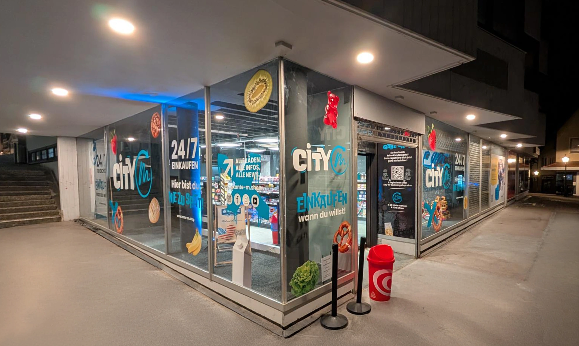 Dank der innovativen Zugangskontrolle über NFC-Geräte oder die City-M-Kundenkarte kannst du deinen Kund*innen ein nahtloses Einkaufserlebnis bieten. Zudem hast du die Freiheit, dein Sortiment individuell zusammenzustellen und regionale Anbieter zu unterstützen, was nicht nur die lokale Wirtschaft stärkt, sondern auch deinen Kund*innen die gewünschten Produkte bietet.