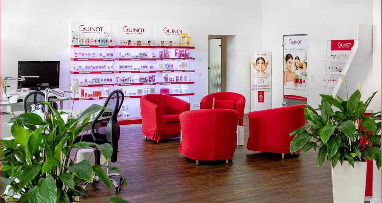 Feine und effiziente Kosmetik, die in den eigenen Laboren des Franchise-Systems Guinot entwickelt wurde. Als Pionier im Bereich der medizinischen Wirkkosmetik arbeitet das Institut Guinot in 84 Ländern und verschönert Menschen täglich auf fast schon magische Weise mit zellerneuernden Substanzen.