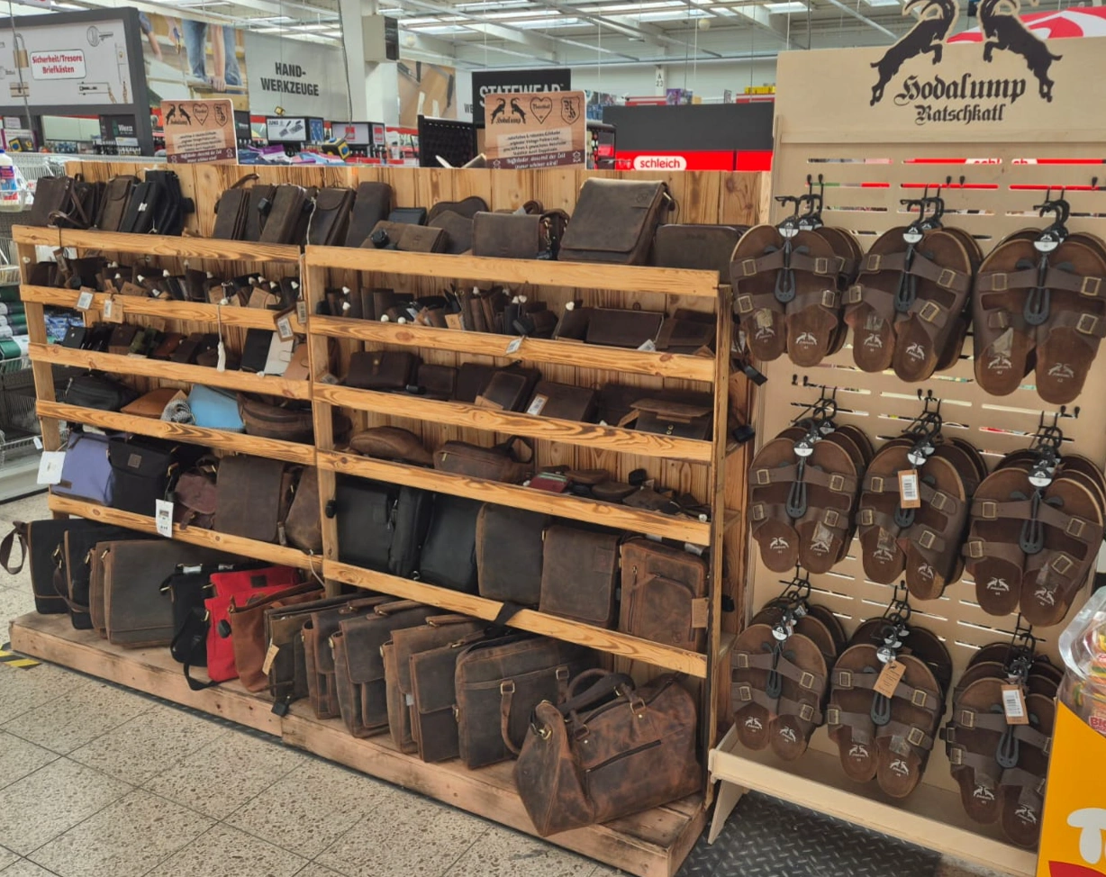 Die hohe Marge und das attraktive Gewinnpotenzial machen die Integration der Lederwaren in dein Sortiment besonders lukrativ. Ein weiteres Plus ist das Shop-in-Shop-System. Mit kostenfreien Displays und selbsterklärenden Produkten gelingt der Verkauf fast wie von selbst.