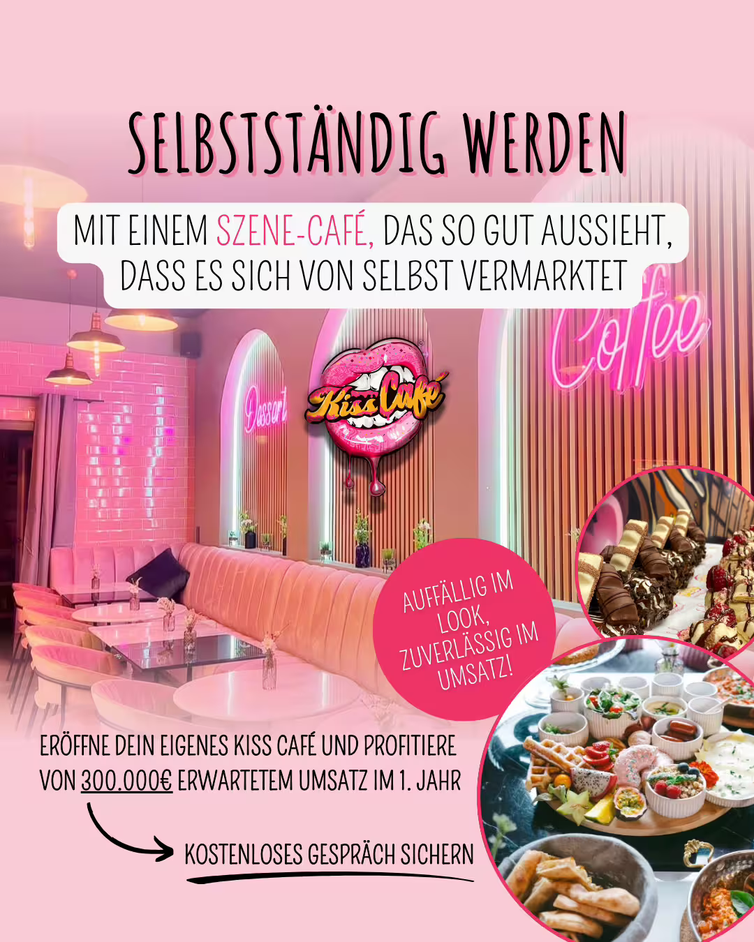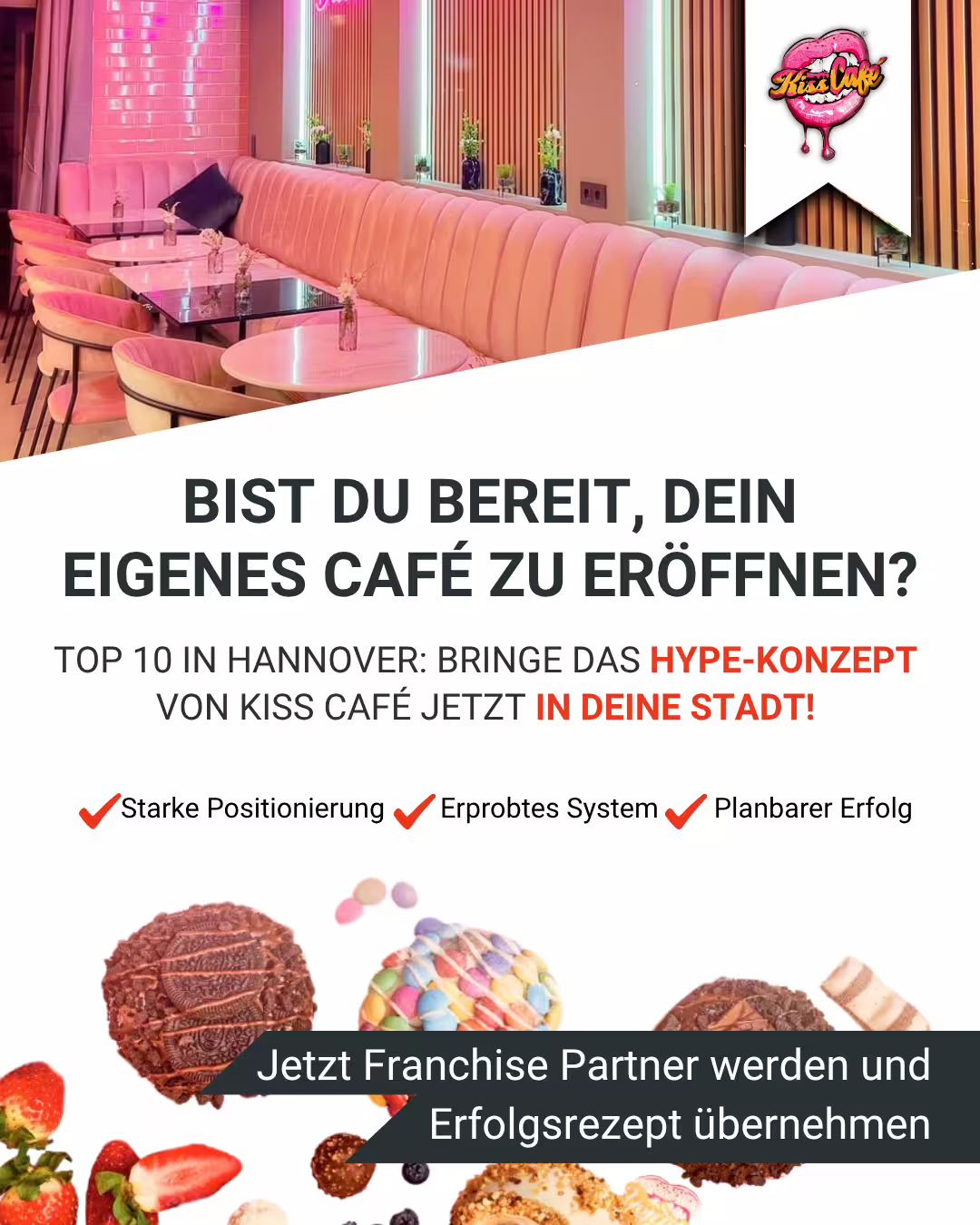 Franchisesystem | KISS-Café schafft Momente, die bleiben – mit Liebe zum Detail, einzigartigem Flair und einem unverwechselbaren Markenauftritt. Werde Teil des erfolgreichen Franchise-Konzepts und lasse einen Ort entstehen, der Menschen verbindet.