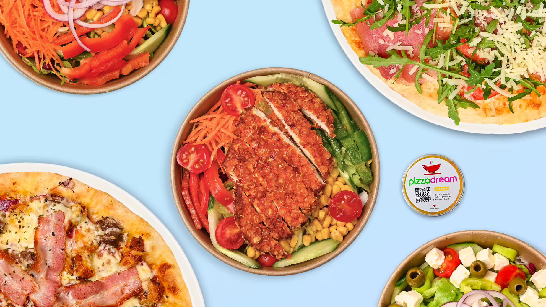 PIZZA DREAM bietet eine Vielfalt an frischen und kreativen Gerichten, die sowohl Einzelkund*innen als auch große Firmenaufträge begeistern. Diese Vielfältigkeit trägt maßgeblich zur Kundenzufriedenheit bei, die bei PIZZA DREAM an oberster Stelle steht. Pünktlichkeit, erstklassige Produktqualität und ein zuverlässiger Lieferdienst sind hier selbstverständlich.