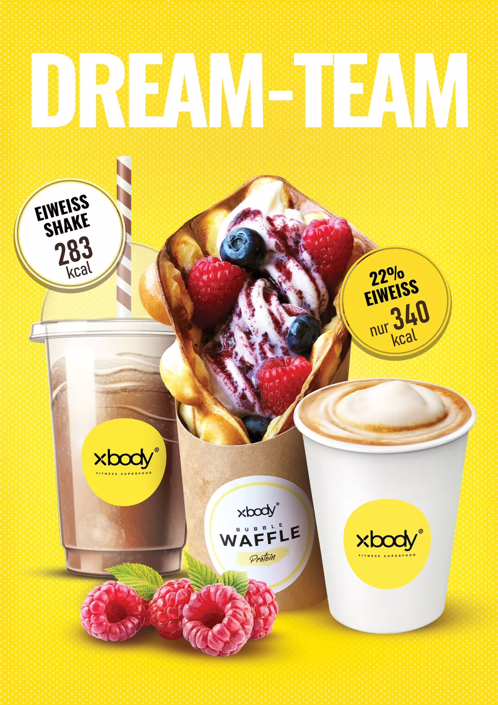 XBODY Fitness Superfood Café bietet seinen Kunden und Kundinnen mit dem neu entwickelten Franchisesystem ein besonderes Cafékonzept. In den modern gestalteten Cafés können Gäste eine große Auswahl an leckeren Low-Carb-Produkten wie beispielsweise Bubble Waffles, Softeis, Shakes und Protein-Wraps genießen. Besonderes Highlight: Die Basis der meisten Getränke und Snacks bilden die Produkte der Fitnessmarke XBODY® und sind nicht nur gesund und innovativ, sondern verfügen auch über Nährwerte auf Fitness-Level. Durch die weitestgehend zuckerreduzierten, meist gluten- und laktosefreien sowie proteinreichen Produkte kannst du als Franchisepartner*in und Betreiber*in deines XBODY Fitness Superfood Cafés deine Kunden und Kundinnen dazu animieren, die tägliche Ernährung auf einfache Weise nachhaltig zu verbessern.